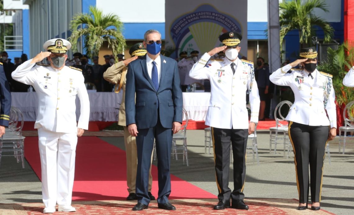 Santo Domingo, RD. El gobernante Luis Abinader inició el acto de investidura de la Sexagésima Graduación Ordinaria de la Academia Militar «Batalla de las Carreras» del Ejército Nacional (ERD) en la que 46 cadetes fueron investidos.