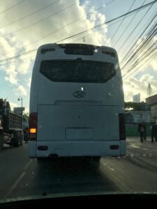 Este es otro autobus de la misma compañía visto hoy circular sin placa el cual circula sin luz de freno derecha.