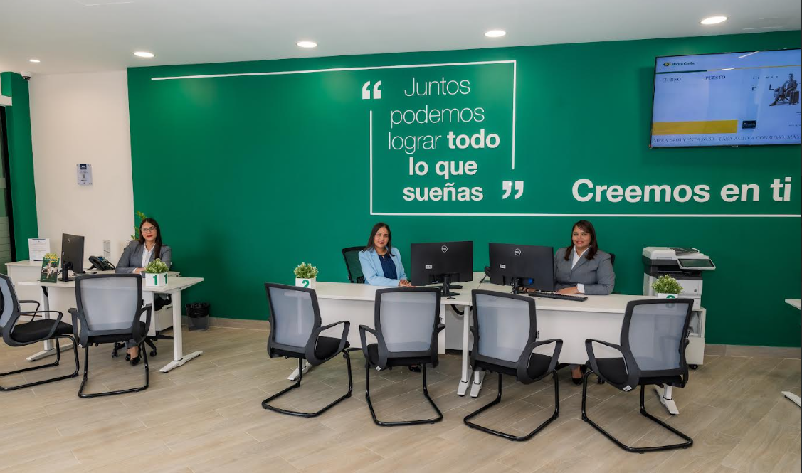 La sucursal incluye cinco estaciones de caja, una de ellas diseñada especialmente para personas con discapacidad físico-motora; cinco oficiales de negocios; pantalla de autoservicio, área infantil ‘Caribitos’, cajero automático, autobanco y parqueos disponibles para mayor comodidad.