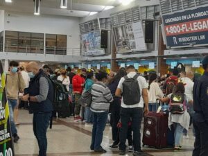 El sábado cientos de viajeros que se encontraban al frente de los caunters de las líneas aéreas del AILA, esperaban poder conectar con otros vuelos, y otros con el objetivo de cambiar su salida para otra fecha.