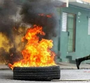 San Francisco de Macorís. Este miércoles ciudadanos de la provincia Duarte al saber de la visita del Presidente Luís Abinader encendieron neumáticos en la autopista de esa comunidad, en el municipio de Cenovi.
