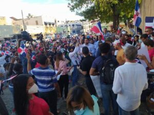 Bavaro, Punta Cana. Un grupo de ciudadanos se dieron la tarea de protestar en contra de la vacunación para prevenir covid-19 en los niños, el domingo en la tarde.