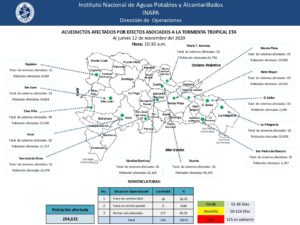 HIGUEY- El Instituto Nacional de Aguas Potables y Alcantarillados (INAPA) informó mediante una nota de prensa a este medio, que debido a las lluvias provocadas por los efectos de la tormenta Eta, se ha visto en la obligación de detener la operación de 26 acueductos.