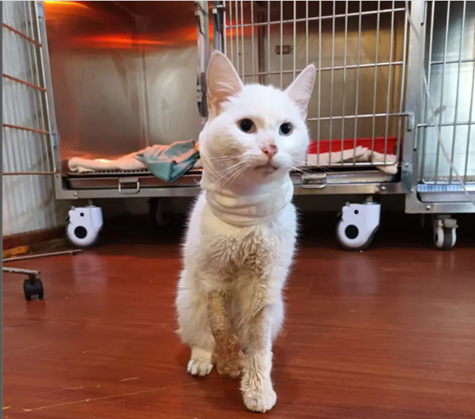 «La felina llamada Emma tuvo que ser hopitalizada en una clínica veterinaria y debió ser sometida a tres cirugías de aseo quirúrgico y reconstructivas».