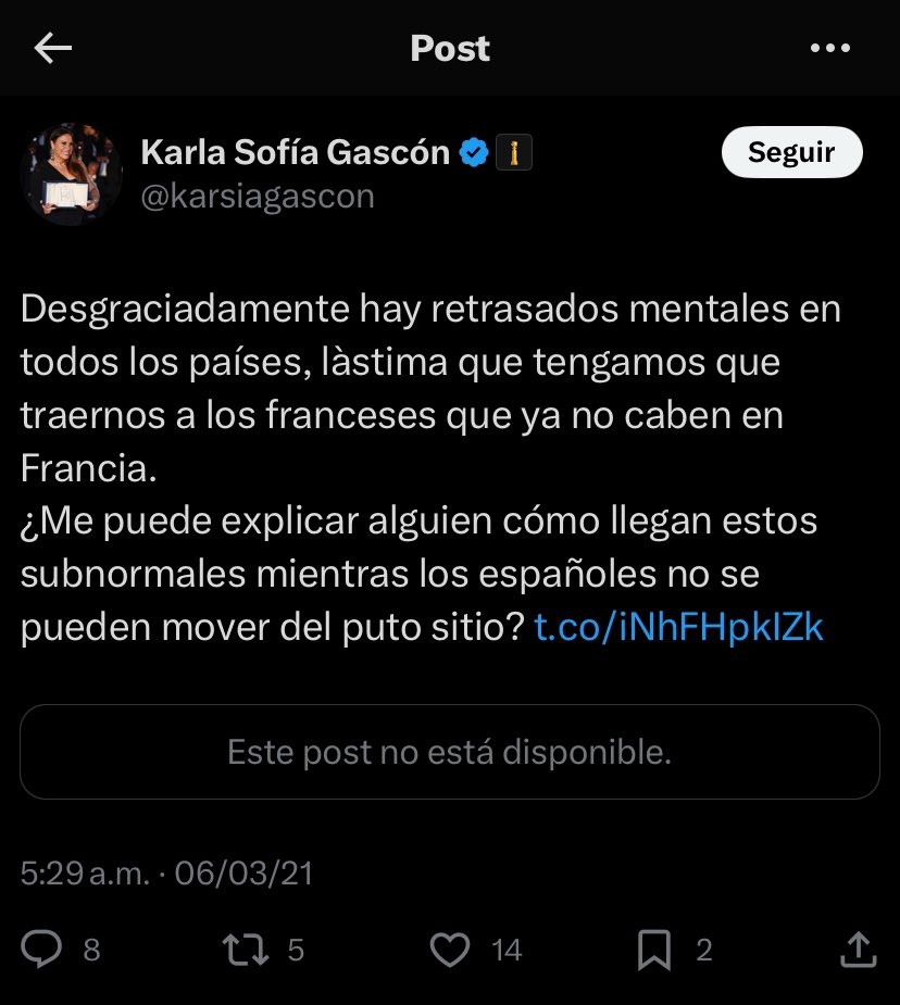La cuenta de X de Gascón había sido desactivada para el viernes. La actriz dijo en un comunicado a The Hollywood Reporter “ya no puede permitir que esta campaña de odio y desinformación afecte ni a mi familia ni a mí, por lo que a petición de ellos estoy cerrando mi cuenta en X”. Netflix no respondió de inmediato a una solicitud de comentarios de The Associated Press el viernes.
