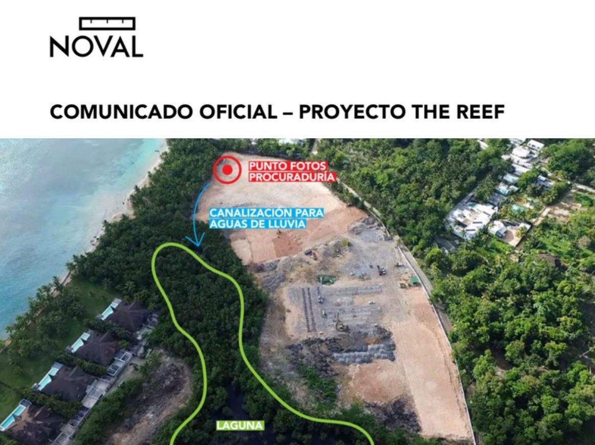 Punta Cana. RD. En medio de tensiones crecientes y opiniones divididas en la comunidad de Playa Bonita, Las Terrenas, el proyecto The Reef, de la empresa Noval Properties, fue paralizado temporalmente por el Ministerio Público, a través de la Procuraduría Especializada para la Defensa del Medio Ambiente (Proedemaren). La detención responde a denuncias por presuntos daños ambientales, aunque la empresa niega categóricamente cualquier violación a la ley y asegura estar trabajando de la mano con las autoridades.
