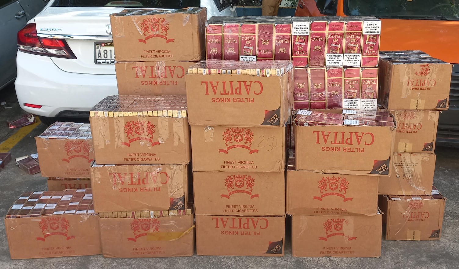 Durante un operativo realizado frente a su vivienda, se incautaron 60 cajas que contenían un total de 8,069 cajetillas de cigarrillos, equivalentes a 161,380 unidades. Al realizar una inspección adicional en la fiscalía, se descubrió que algunos paquetes de cigarrillos no estaban completos, ya que contenían entre 2 y 5 cajetillas, lo que indica que parte de la mercancía ya podría haber sido vendida.