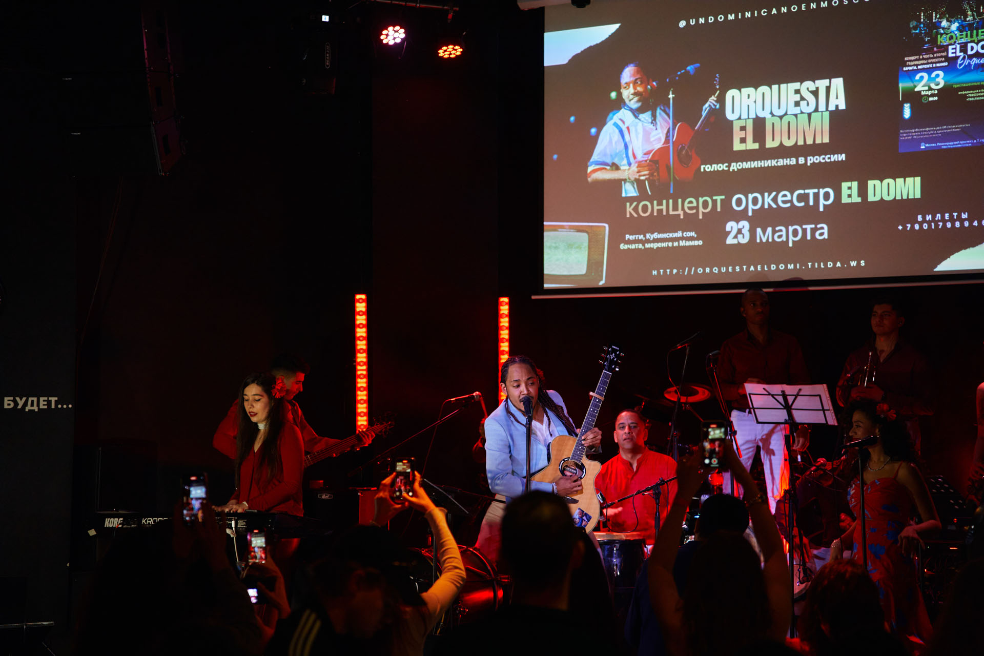 Moscú, Rusia– El pasado 23 de Marzo la inigualable Orquesta EL DOMI presentó un concierto en honor a su segundo aniversario. El concierto celebrado en el loft Belka en el centro de Moscú estuvo a tope. Además, no solo fue una noche llena de bachata, merengue y mambo, sino que también el público pudo disfrutar de una oleada de música caribeña, ya que se estuvieron presentando dos increíbles agrupaciones: Angelique Jackson quien deleitó con su voz al ritmo de la música jamaiquina, y Eduardo Breff con su banda El Son del Son, que con su música cubana puso a bailar a todos.