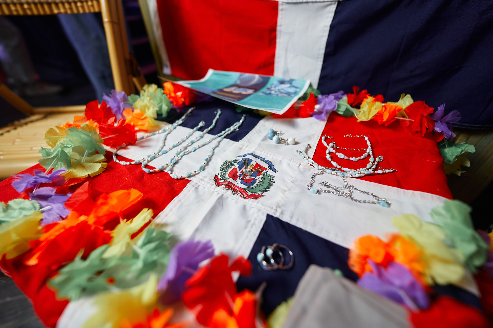 La escenográfica del concierto fue una sorpresa total, ya que contaba con “El Colmadón El Domi” donde se estuvo exhibiendo hermosas prendas de Larimar para la venta al público presente. Y, a la vez también sirvió como stand para fotografías.