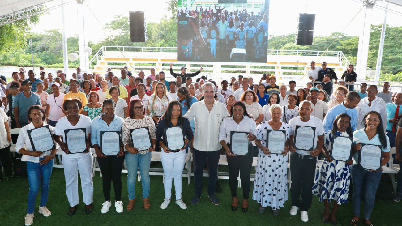 SAN PEDRO DE MACORÍS, RD.- Durante el acto, Abinader destacó la importancia de la titulación de tierras como una política pública de justicia social que impulsa la economía formal y brinda seguridad patrimonial. “Estos títulos no solo representan un documento, sino esperanza y cambio”, expresó.
