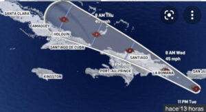 En la trayectoria pronosticada, se espera que el centro de Fred se mantenga sobre la Española esta tarde y luego que se mueva cerca de las Islas Turcas y Caicos y al sureste de las Bahamas el jueves, y luego se moverá al norte de la costa norte del centro Cuba el viernes, según el Centro Nacional de Huracanes de Miami.