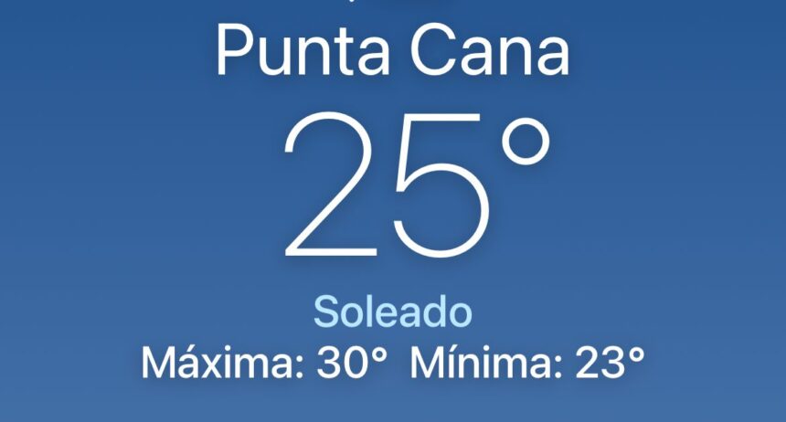 PUNTA CANA, RD. – La jornada de hoy se presenta con un cielo mayormente despejado y condiciones de sol generalizado en toda la zona. Se espera una temperatura máxima de 29 grados Celsius y una mínima de 23, en un ambiente marcado por una humedad del 84% y vientos suaves de 6 km/h.